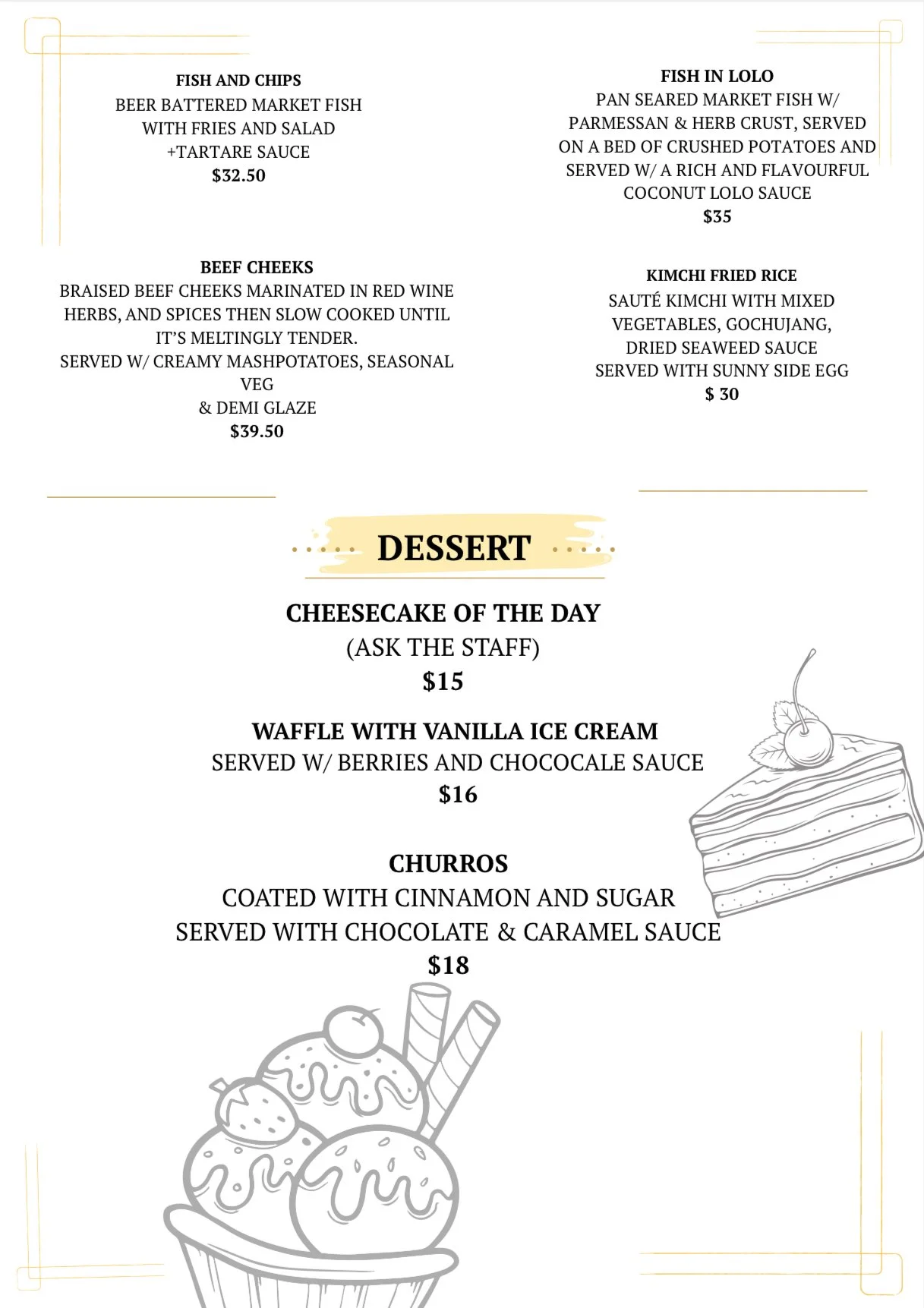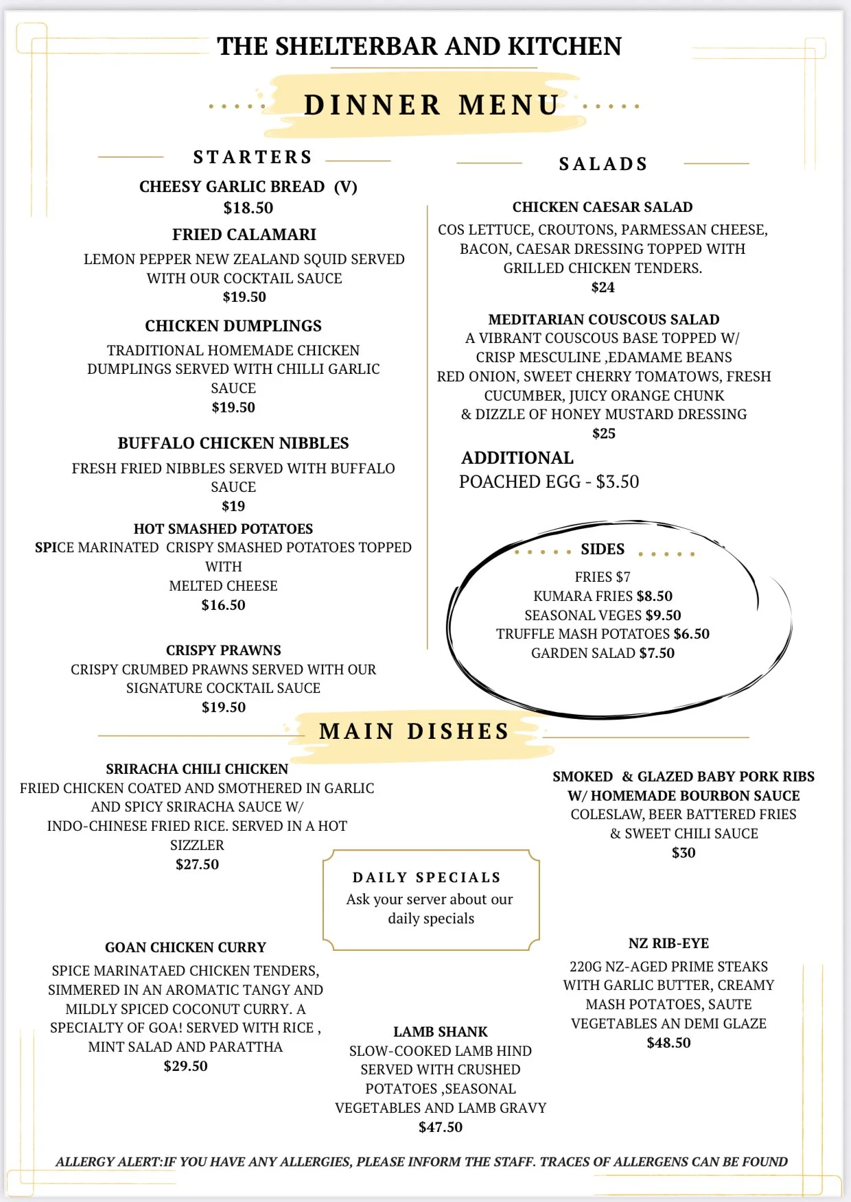 DINNER MENU 5PM-8.30PM